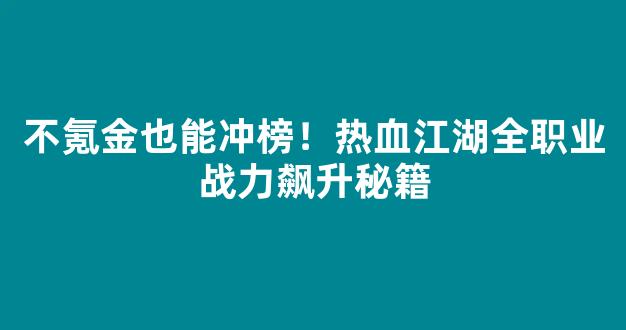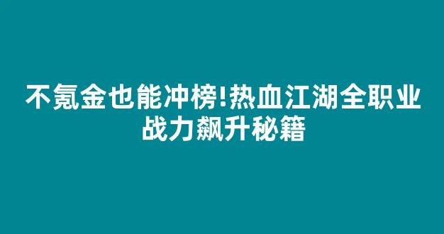 在热血江湖这款游戏中,战力是衡量玩家实力的重要标准之一。对于许多玩家来说,由于游戏机制和市场的变化,单纯的提升战力已经无法满足他们的需求。我们需要掌握一些新的战力提升技巧,以实现不氪金也能冲榜的目标。