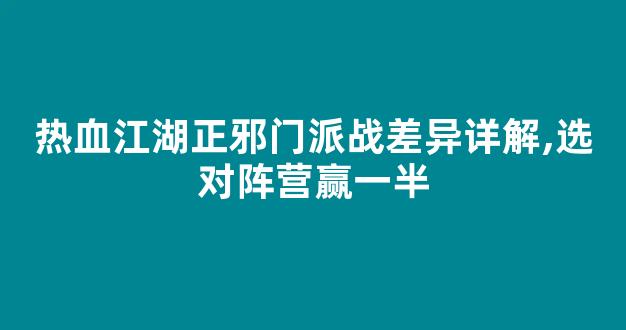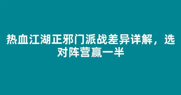在热血江湖中,正邪门派的对立是游戏的一大特色。每个门派都有其独特的风格和战斗方式,选择正确的阵营对于赢得战斗至关重要。本文将详细介绍正邪门派战的差异,帮助您选对阵营,提高胜利的可能性。