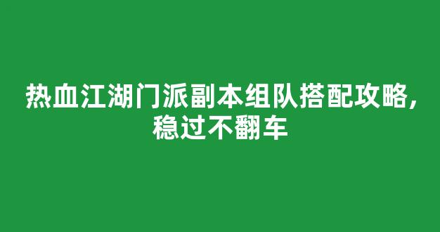 在热血江湖中,门派副本是玩家们展示实力、争夺荣誉的重要舞台。由于副本的难度较高,许多玩家在组队时常常遇到困难。本文将介绍热血江湖门派副本组队搭配攻略,帮助您稳过不翻车。
