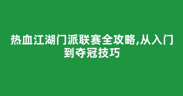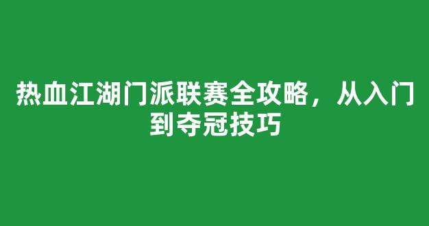 在热血江湖中,门派联赛是玩家们展示实力、争夺荣誉的重要舞台。要想在门派联赛中脱颖而出,我们需要掌握一系列的技巧和策略。本文将为您呈现一份全面的门派联赛攻略,帮助您从入门到夺冠。