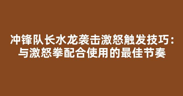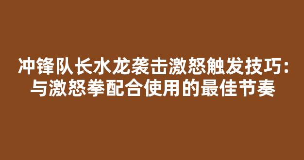 2. 中期阶段:在游戏的中期阶段,开始尝试与激怒拳配合使用水龙袭击。通过不断尝试,可以找到最佳的搭配节奏。一般来说,与激怒拳配合使用水龙袭击的最佳节奏是在攻击过程中保持一定的距离,避免被敌人反击。